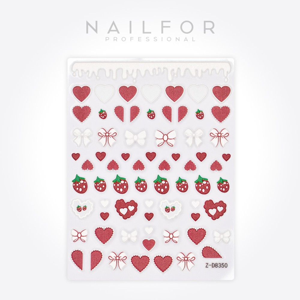 Stickers 3D embossed stickers ideal for decorating your nails. The adhesive stickers can be applied both to reconstructed nails and to nail polish. For greater hold, after applying the adhesive stickers, we recommend a coat of transparent nail polish on natural nails or sealing gel on reconstructed nails.