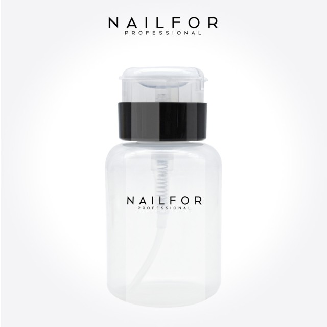 Dispensador con bomba de plástico transparente de color blanco. Ideal para removedores sin acetona y líquidos limpiadores de uñas.