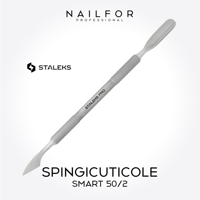 El empujador de cutículas STALEKS® PRO SMART es una herramienta de acero inoxidable de doble punta de alta calidad para empujar y quitar cutículas.