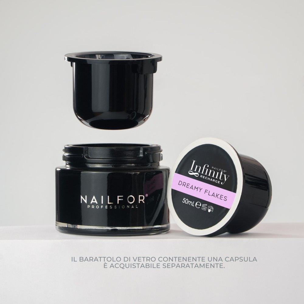 Infinity Gel di Nailfor® rivoluziona la cura delle unghie con il suo esclusivo sistema ricaricabile. Con l'acquisto iniziale del barattolo in elegante vetro nero, riceverai all'interno la tua prima capsula di gel. Una volta terminato il gel, la capsula può essere facilmente rimossa e sostituita con una nuova ricarica! Questo design non solo è esteticamente piacevole ma anche funzionale perché può essere ripetuto all'infinito, garantendo una soluzione sostenibile e conveniente per la cura delle tue unghie.